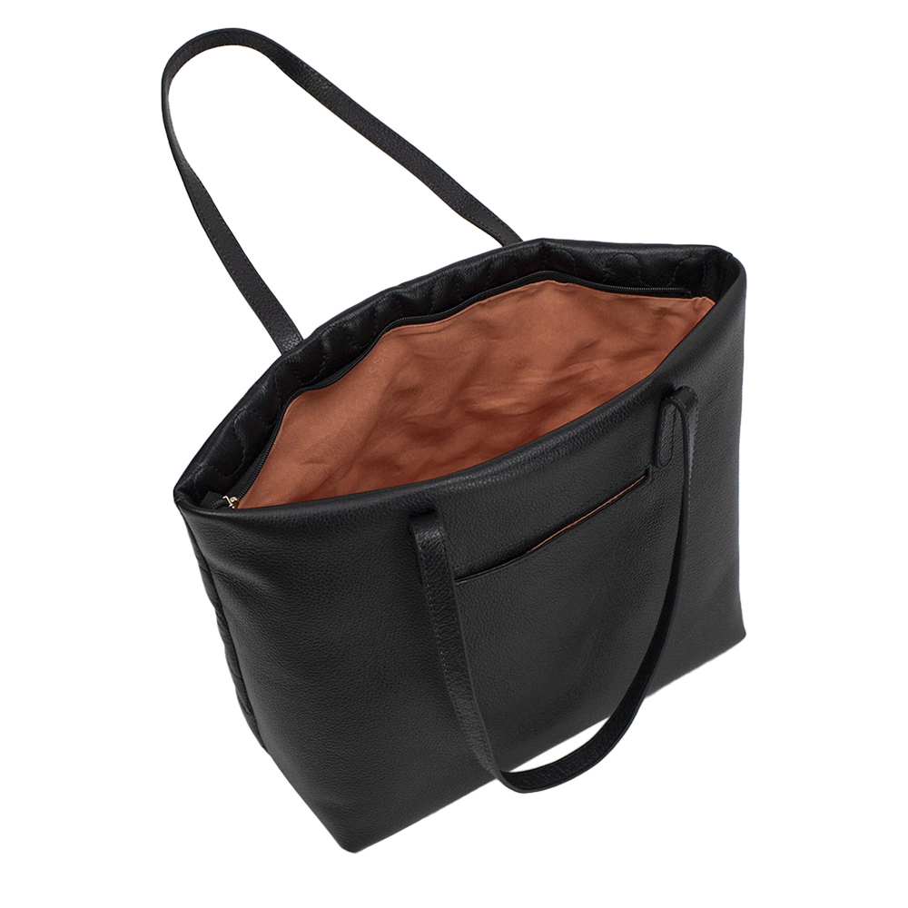 A Bolsa Classe Couro Shopping Bag com Costura Ondulada é um acessório que une a sofisticação do couro com um design moderno e cheio de personalidade. A costura ondulada confere um toque único à peça, tornando-a ainda mais charmosa e diferenciada.