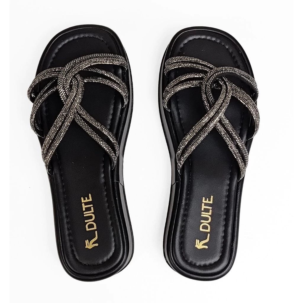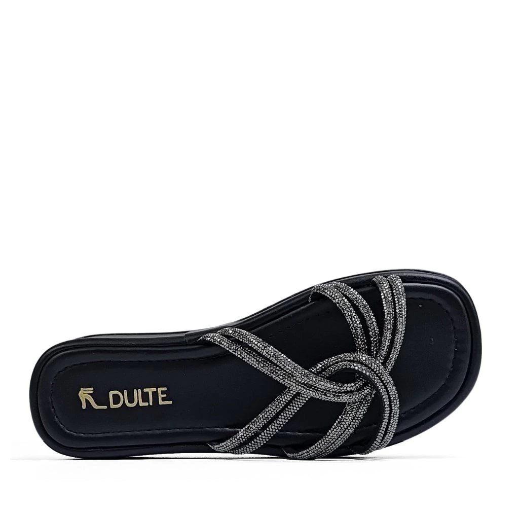 A Sandália Papete Dulte Feminino Strass Preto é a escolha perfeita para mulheres que desejam um calçado versátil e cheio de estilo. Com um design moderno e sofisticado, esta papete apresenta detalhes em strass que adicionam um toque de brilho e glamour a qualquer look.